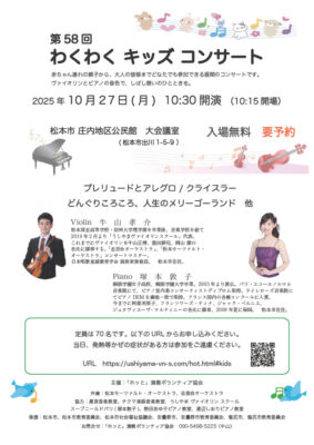 新規イベント「第58回 わくわくキッズコンサート」を追加しました!